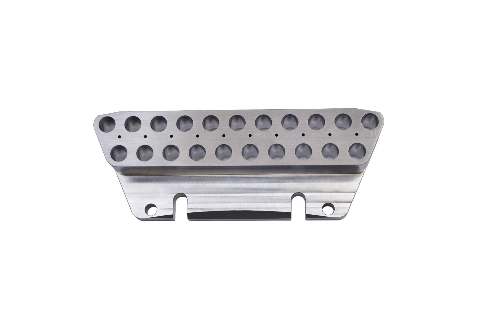 ![]() 1.产品名称:模具 2.材料:SUS316L 3.主要工艺:CNC 4.技术难点:21个孔位公差±0.005mm,孔内粗糙度Ra0.1-0.2,且不能有划痕 | 2.材料:白色PET 3.主要工艺:CNC 4.技术难点:φ1.4孔公差+0.02mm,深度20.8mm,公差-0.03mm,位置度±0.01 | ![]() 2.材料:SUS316 3.主要工艺:数车、四轴CNC 4.技术难点:内孔及头部外圆同轴度0.03 |